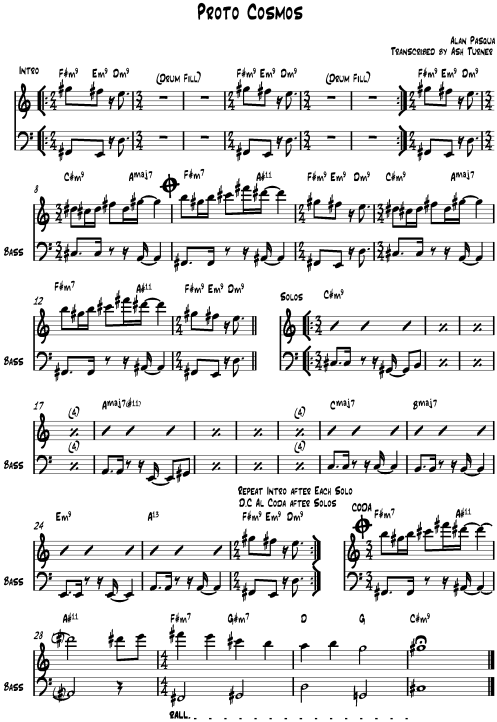I also looked at the performance aspect of Joshua Redman’s ‘Jazz Crimes’ within a compositional context. I managed to pull most of the chords off the internet, which seem ok, work some out and notate a chord sheet for the two main vamps. It’s a great song with a lot of chromatic phrases within the chord changes, melody and improvisational sections. The track itself is very groovy from the drums, whilst still keeping that loose jazz feel within the solo / breakdown section. Below is the transcription I pulled together and worked out: